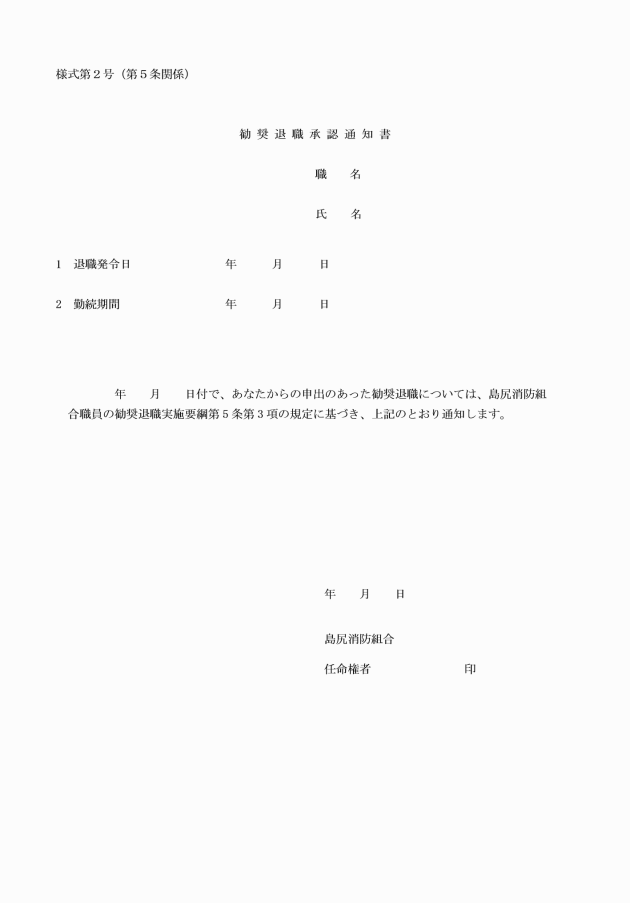第5条 任命権者は、第2条の基準に該当する職員に対し、その年度の6月に勧奨退職実施要綱に該当する旨通知するものとする。